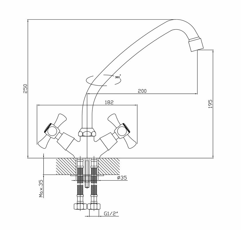 Смеситель для кухни двухвентильный VIKO V-1513 цвет хром