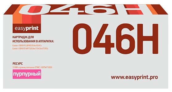 Картридж EasyPrint LC-046H M для Canon i-SENSYS LBP653Cdw/654Cx/MF732Cdw/734Cdw/735Cx (5000 стр.) пурпурный, с чипом