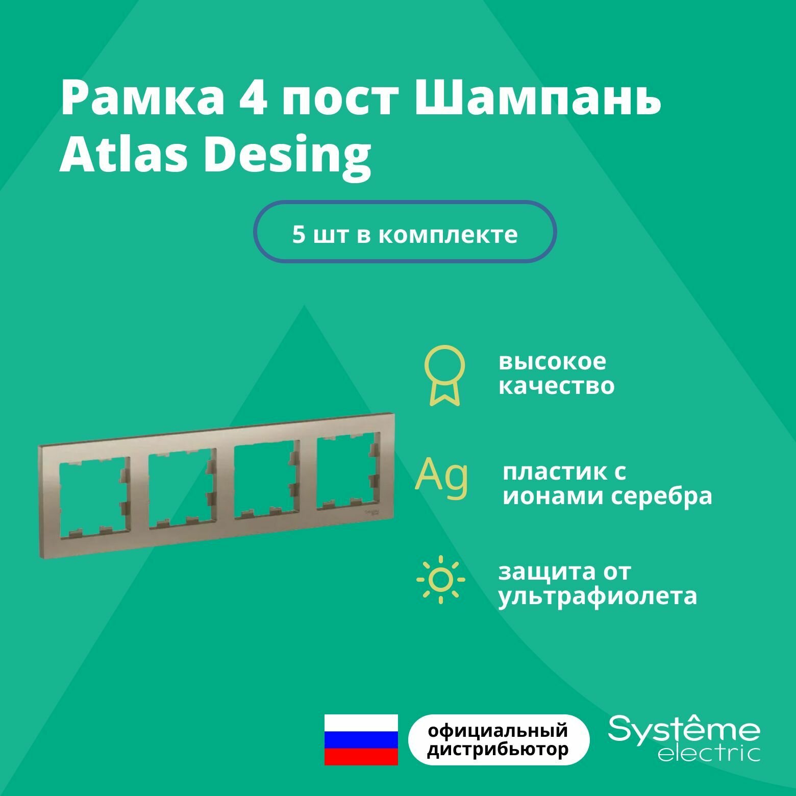 Купить Рамка 4-постовая для розеток и выключателей Шампань AtlasDesign (Атлас Дизайн) Schneider Electric ATN000504 5шт