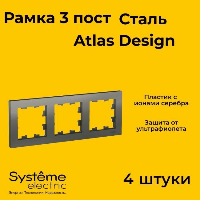 Купить Рамка 3-м ATLAS DESIGN универс. сталь SchE ATN000903 (упаковка 4 шт.)