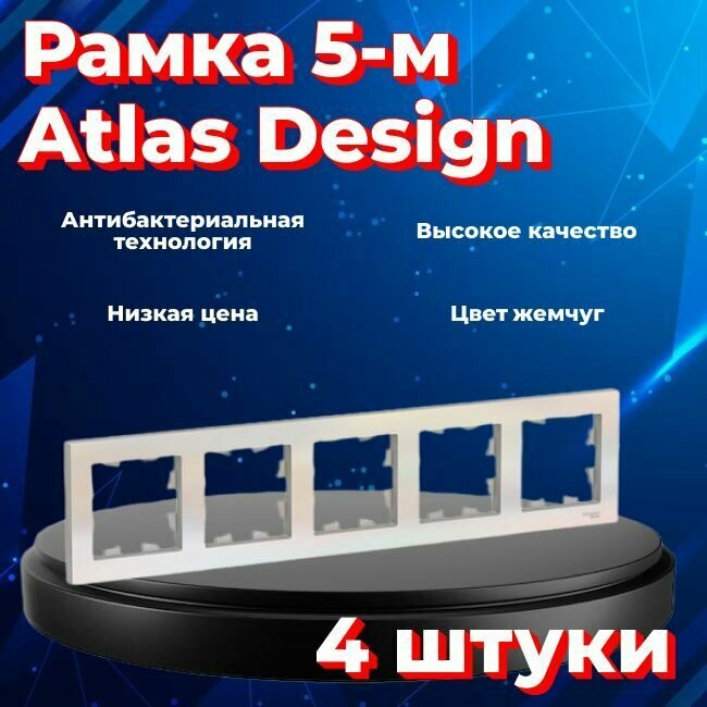 Купить Рамка для розетки выключателя пятерная Schneider Electric (Systeme Electric) Atlas Design Антибактериальное покрытие жемчуг ATN000405 4шт