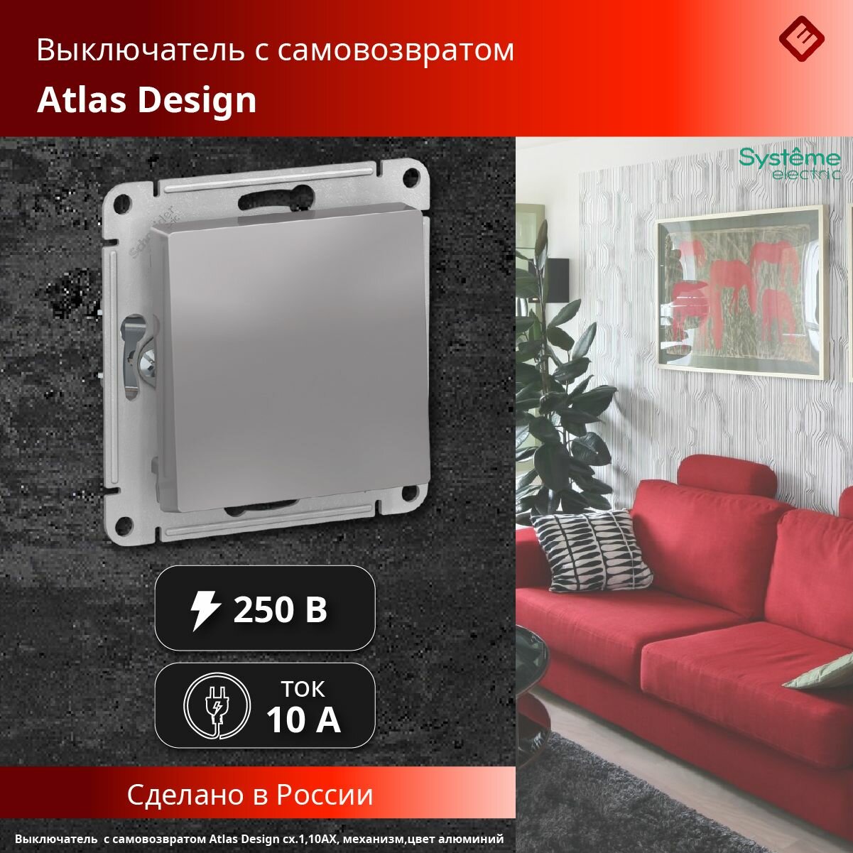 СохранитьВыключатель с самовозвратом (алюминий), сх.1, 10АХ, механизм Schneider Electric AtlasDesign интересное: