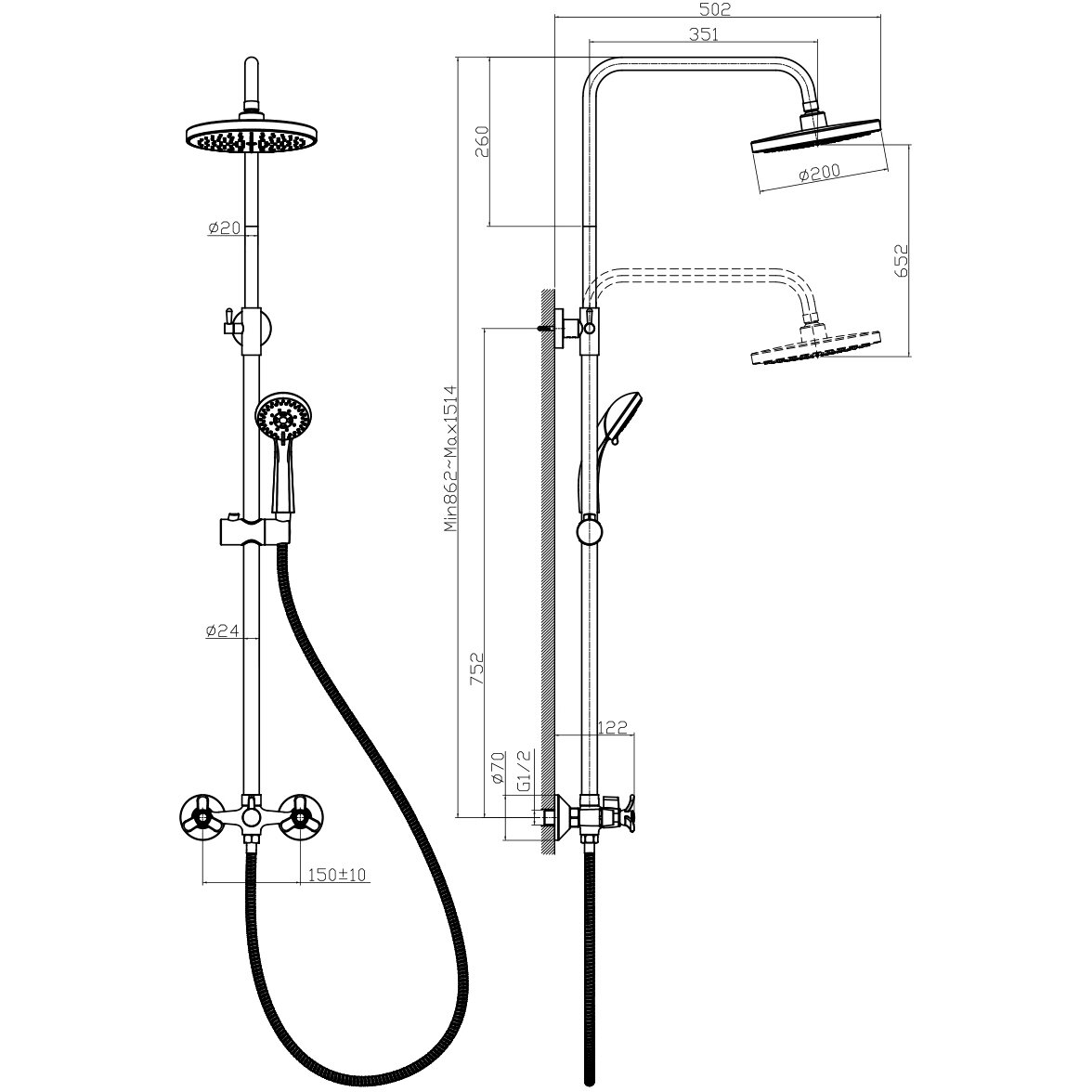 | Особенности | S-образные эксцентрики / держатель душевой лейки / регулируемый верхний душ |