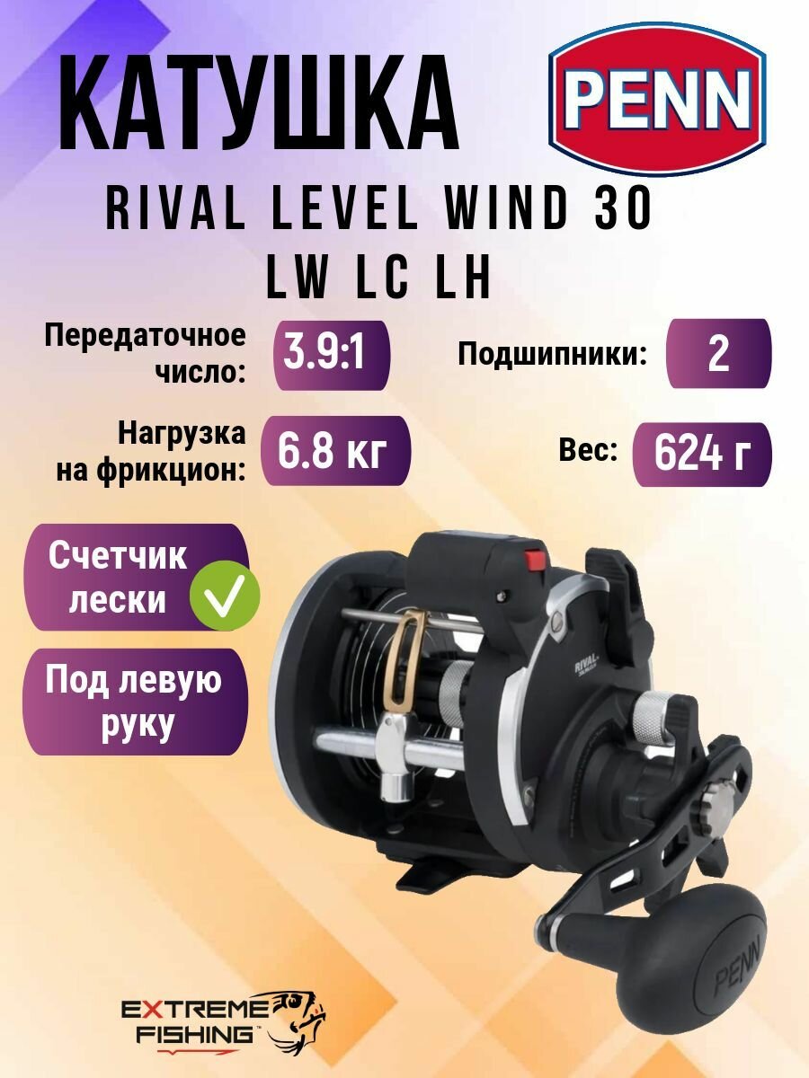 Катушка мультипликаторная со счетчиком лески Penn Rival Level Wind 30 LW LC LH интересное:
