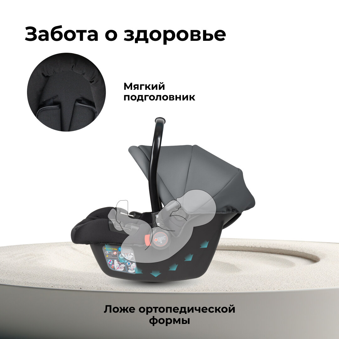 | Опции | поддержка головы новорожденного / защита от боковых ударов / округлое качающееся основание / возможность установки на шасси / положение для сна |