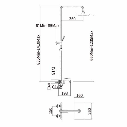 | Комплектация | душевая стойка / Смеситель / излив / установочный комплект / штанга / верхняя лейка / ручная лейка / шланг |