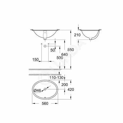 Grohe Bau Ceramic 39423 000 Раковина врезная снизу 560x420