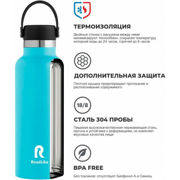 Термобутылка RoadLike Flask, 600 мл, голубой