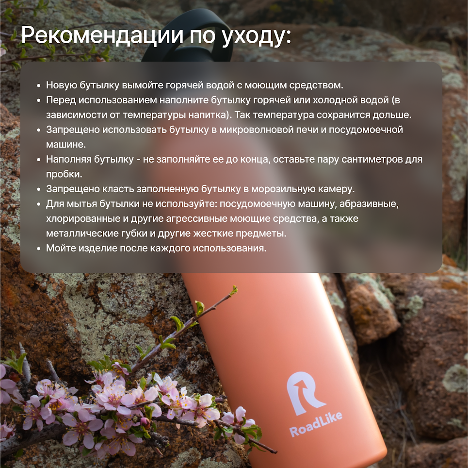 | Отзыв: | Потеряла свой термос и начала искать ему замену, в итоге выбрала по отзывам этот вариант, плюс еще дизайн и внешний вид привлекательный, сразу обращают внимание на нежный цвет термобутылки. Пока минусов не обнаружила серьезных, ну может, что нет чашечки-крышечки, но мне это не мешает, я пью так, из горлышка, благо оно узкое для этого, зато в остальном меня устраивает на все сто: термобутылка держит температуру долго и совсем не протекает, крышка плотная и отдельное внимание хочу уделить ручке-удобно носить, а на пикнике можно повесить за веточку дерева. Чай внутри не приобретает лишних запахов. |