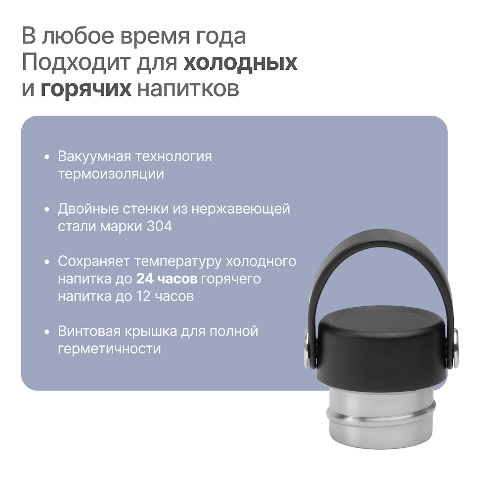 | Отзыв: | Сохраняет жидкость горячей до суток, поэтому могу с вечера подготовить бутылочку, а после брать с собой на прогулку. Выглядит стильно, цвет понравился. |