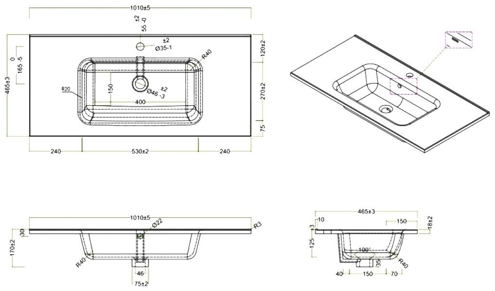 | Отверстие под перелив | есть |