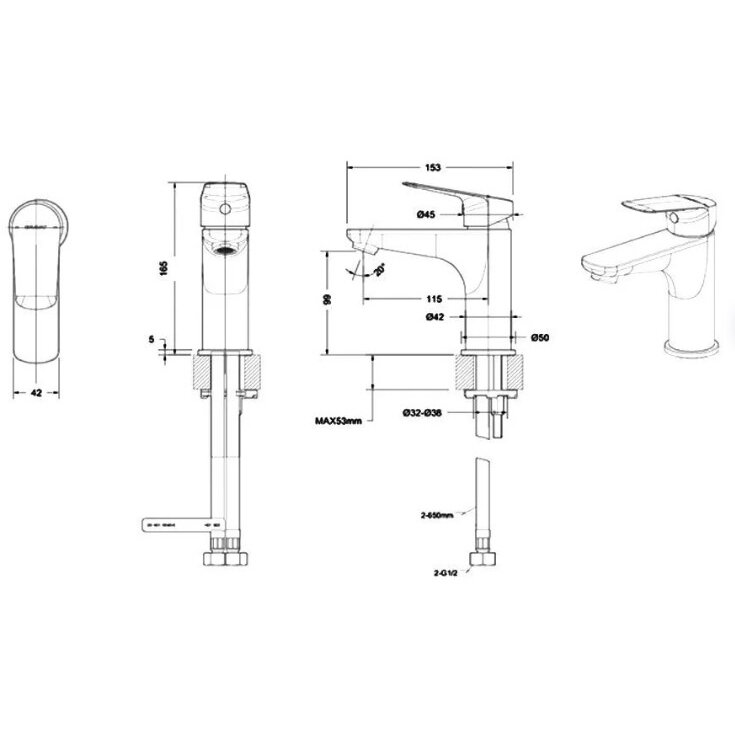 Смеситель для раковины Bravat F1429564BW-9-ENG Rhein Смеситель для умывальника, черный
