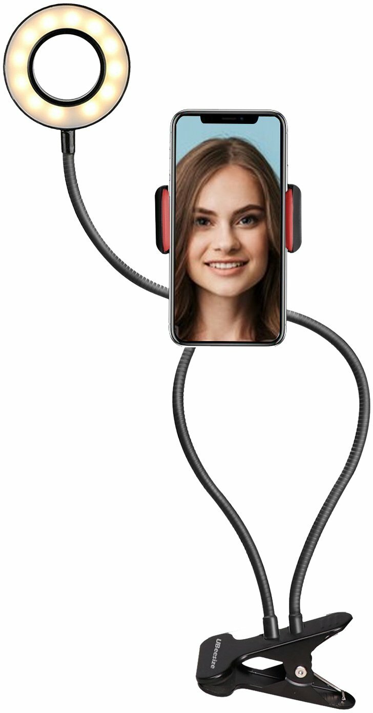 ARTSTYLE TL-604B Светильник на прищепке, черный (настольный кольцевой светодиодный, димм, с держателем для телефона)