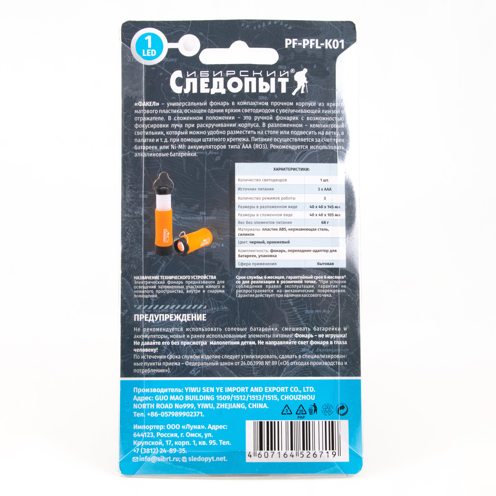 СохранитьФонарь кемпинговый складной "сибирский следопыт-факел", 1L, 3хААА интересное: