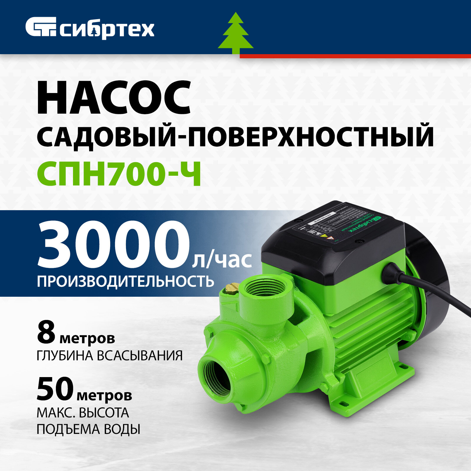 Садовый поверхностный насос СПН700-Ч, 700 Вт, напор 50 м, 3000 л/ч, чугун Сибртех Сибртех