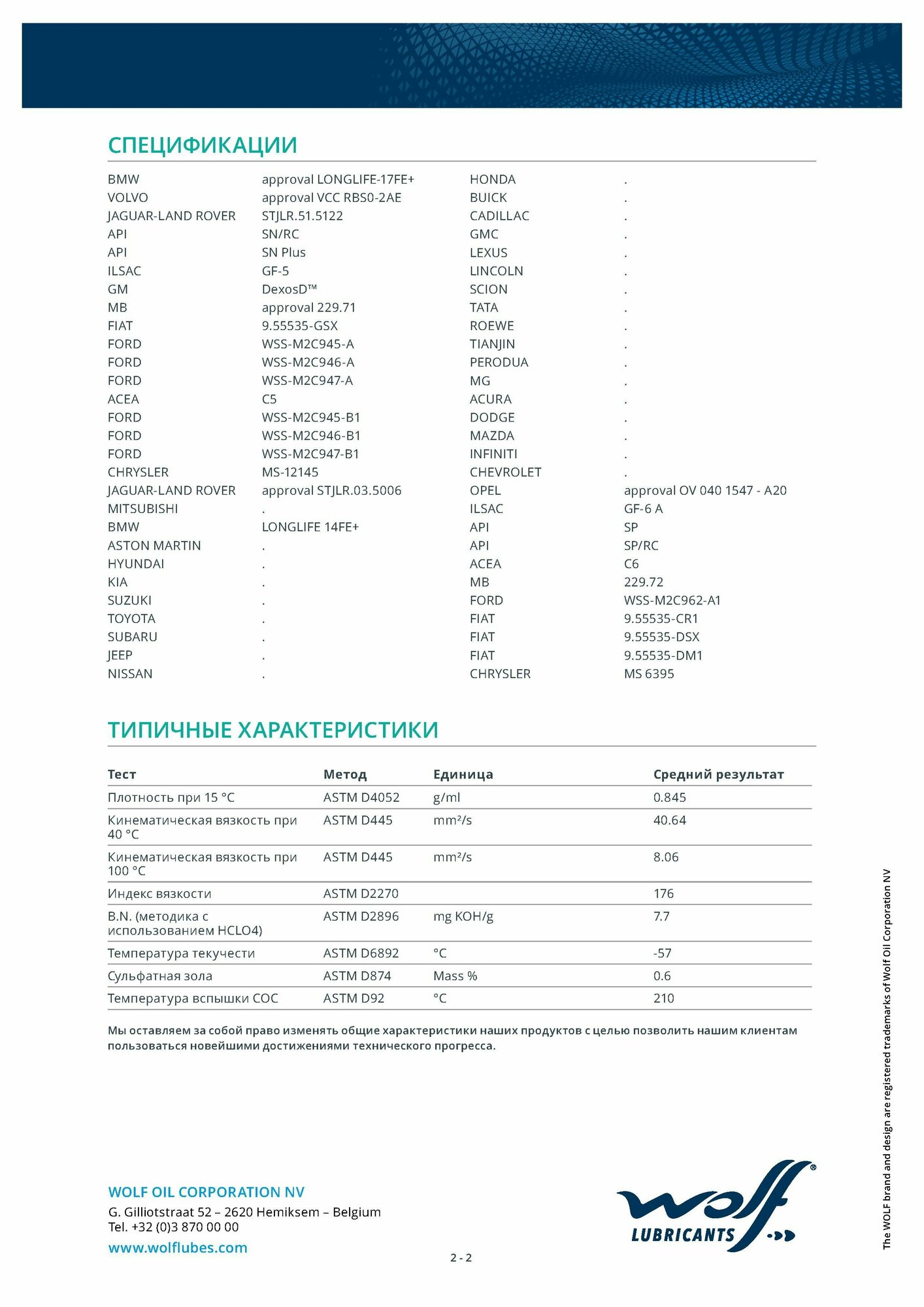 WOLF OIL '8331336 Масло моторное