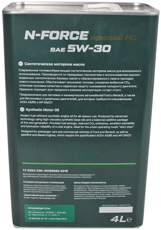 Масло моторное C.N.R.G. N-Force Special FO 5W-30 SN/CF кан. 4л