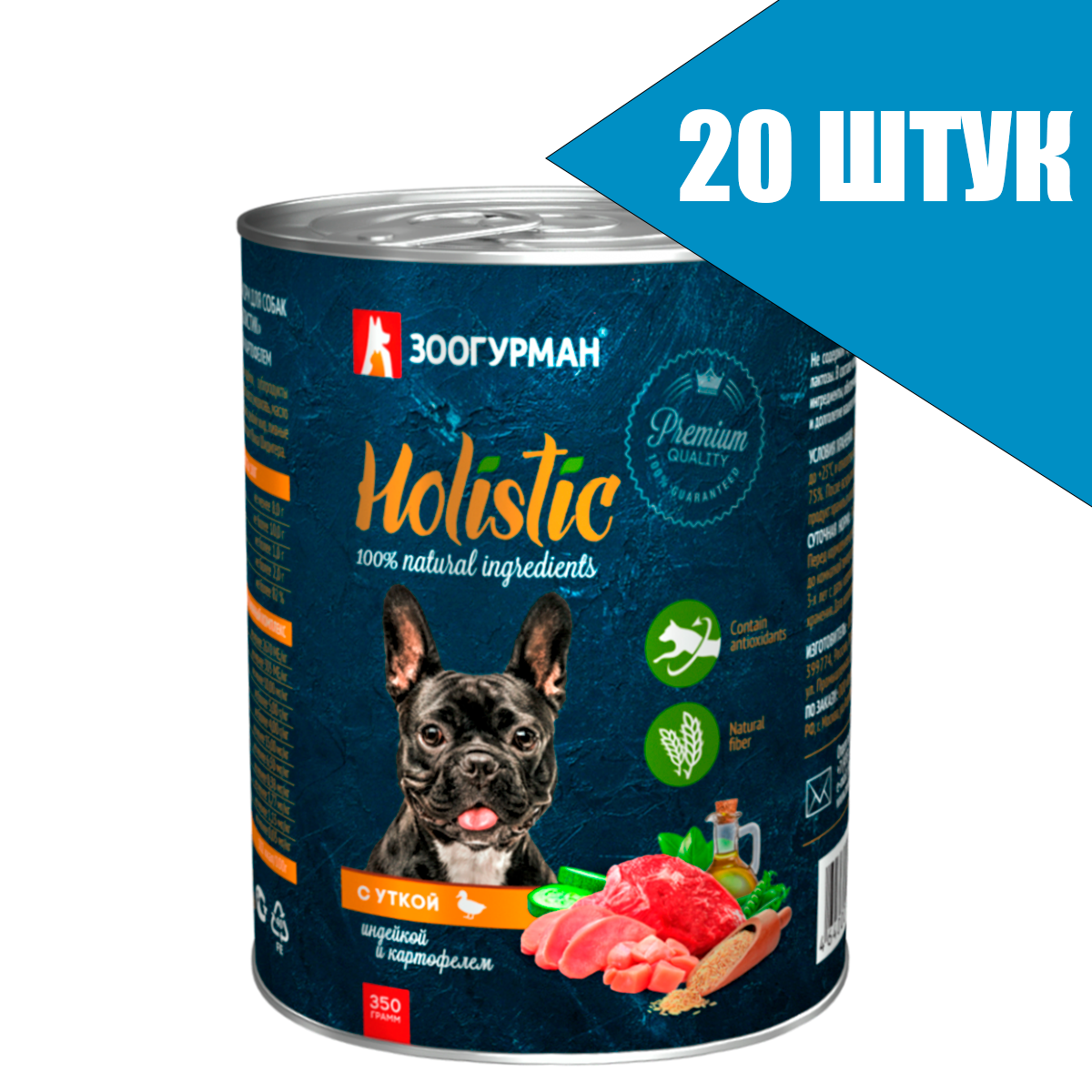 Корм Зоогурман Holistic (консерв.) для собак, утка с индейкой и картофелем, 350 г x 20 шт