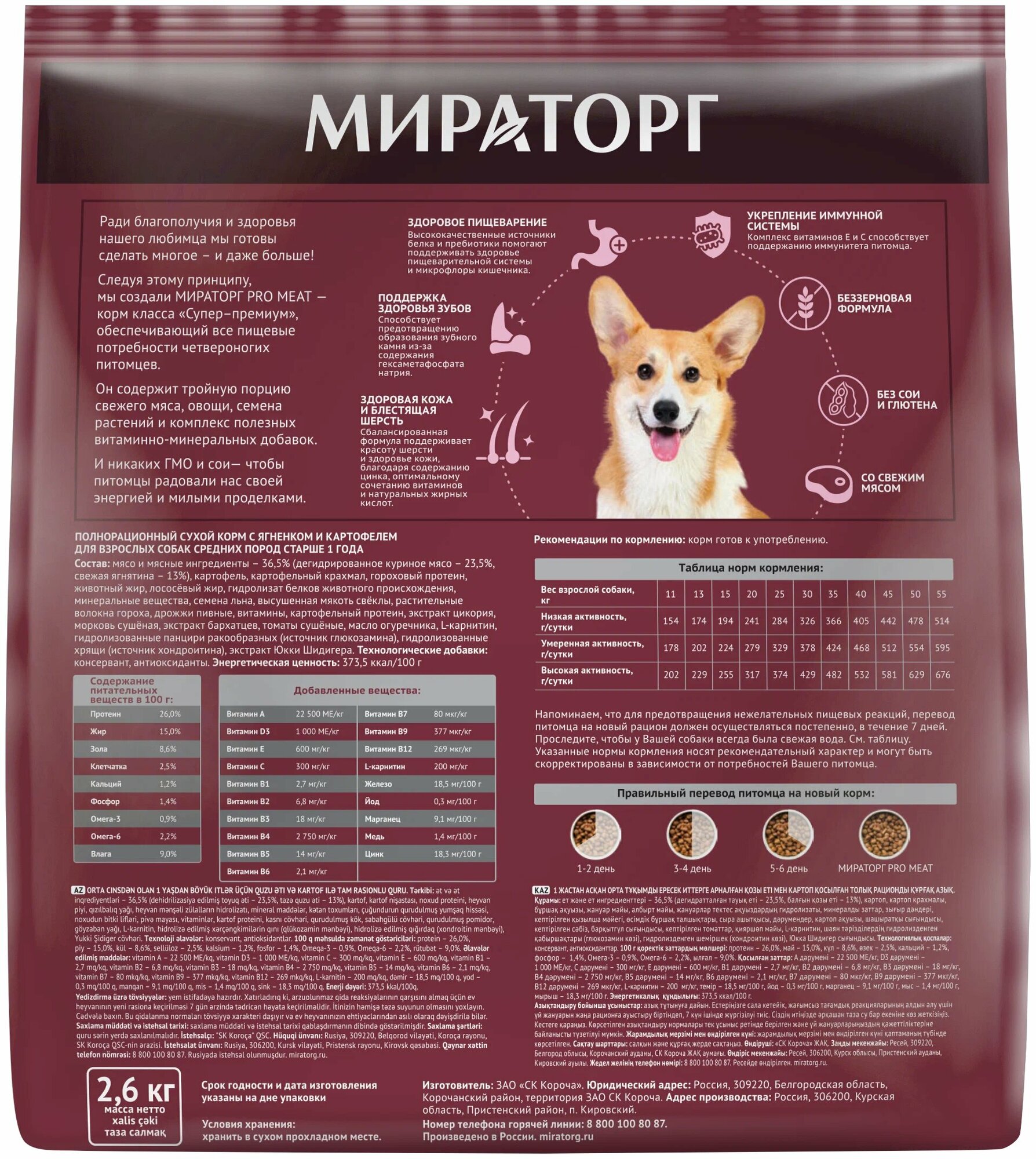Полнорационный сухой корм мираторг PRO MEAT с ягненком и картофелем для взрослых собак средних пород старше 1 года 2,6 кг