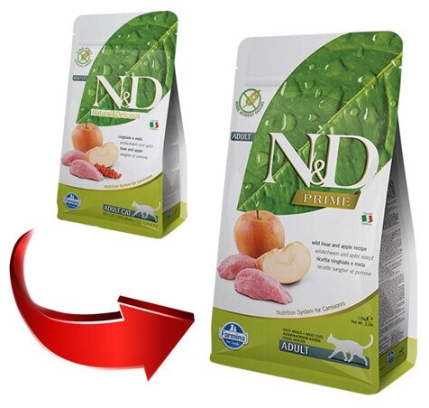 Farmina N&D Prime Cat Boar & Apple Adult сухой беззерновой корм для взрослых кошек с кабаном и яблоком - 1,5 кг
