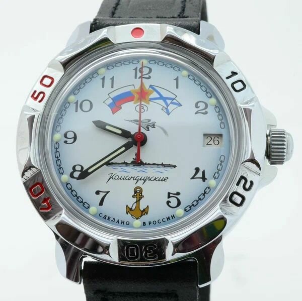 Мужские наручные часы Восток Командирские 53925Б-classic, натуральная кожа, черный