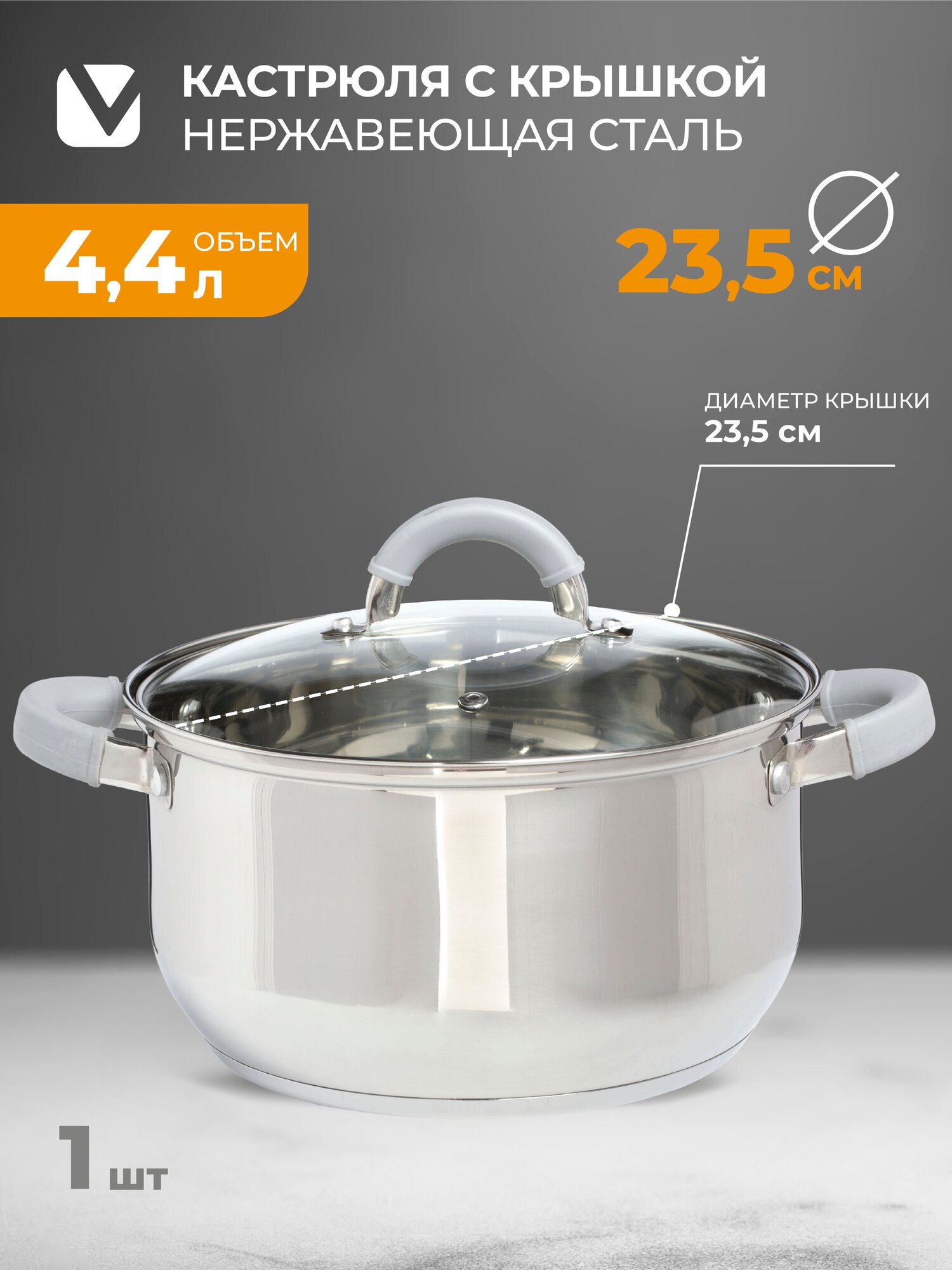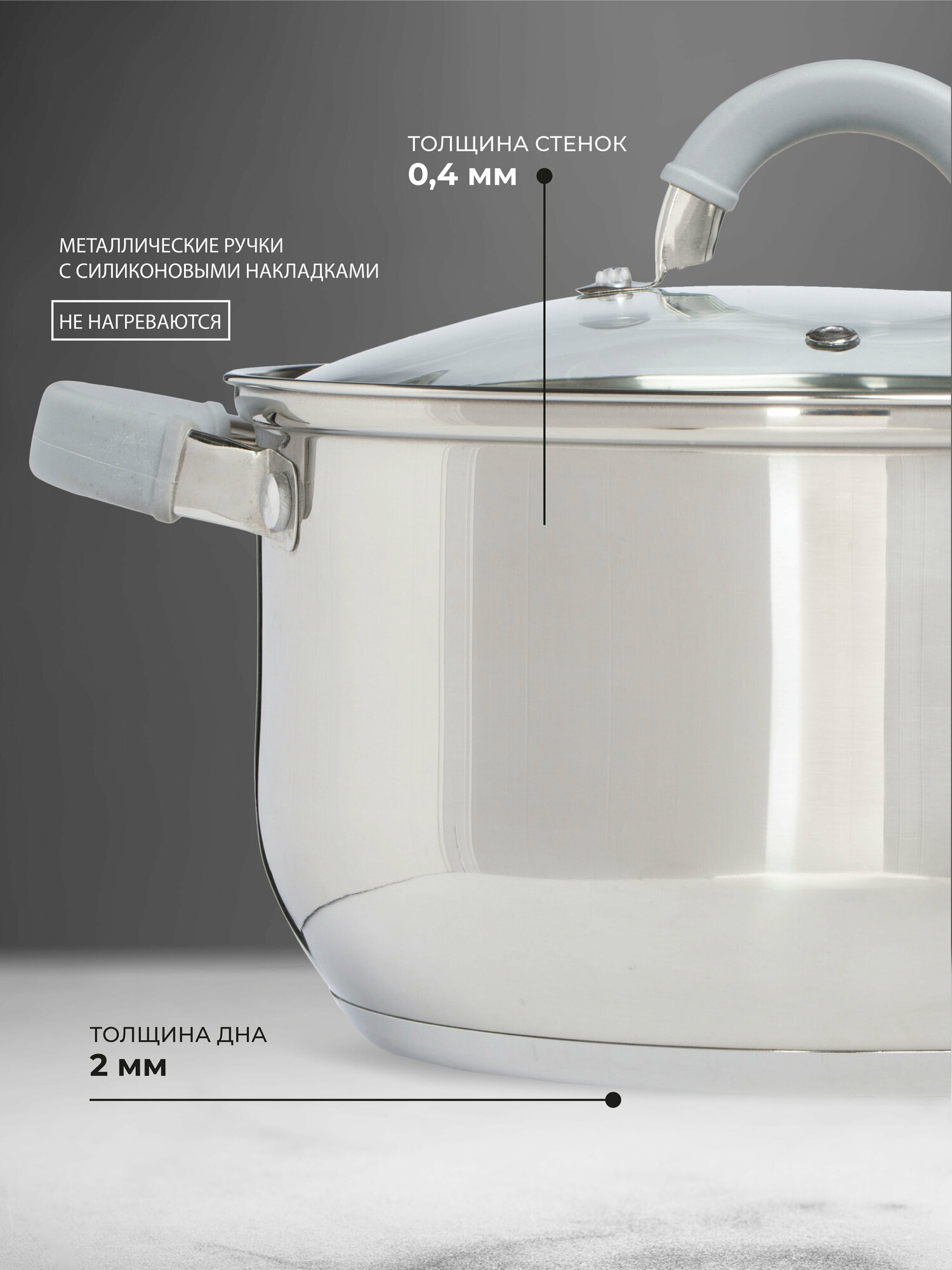 | Комплектация | кастрюли с крышками 2,4 л, 4,4 л |