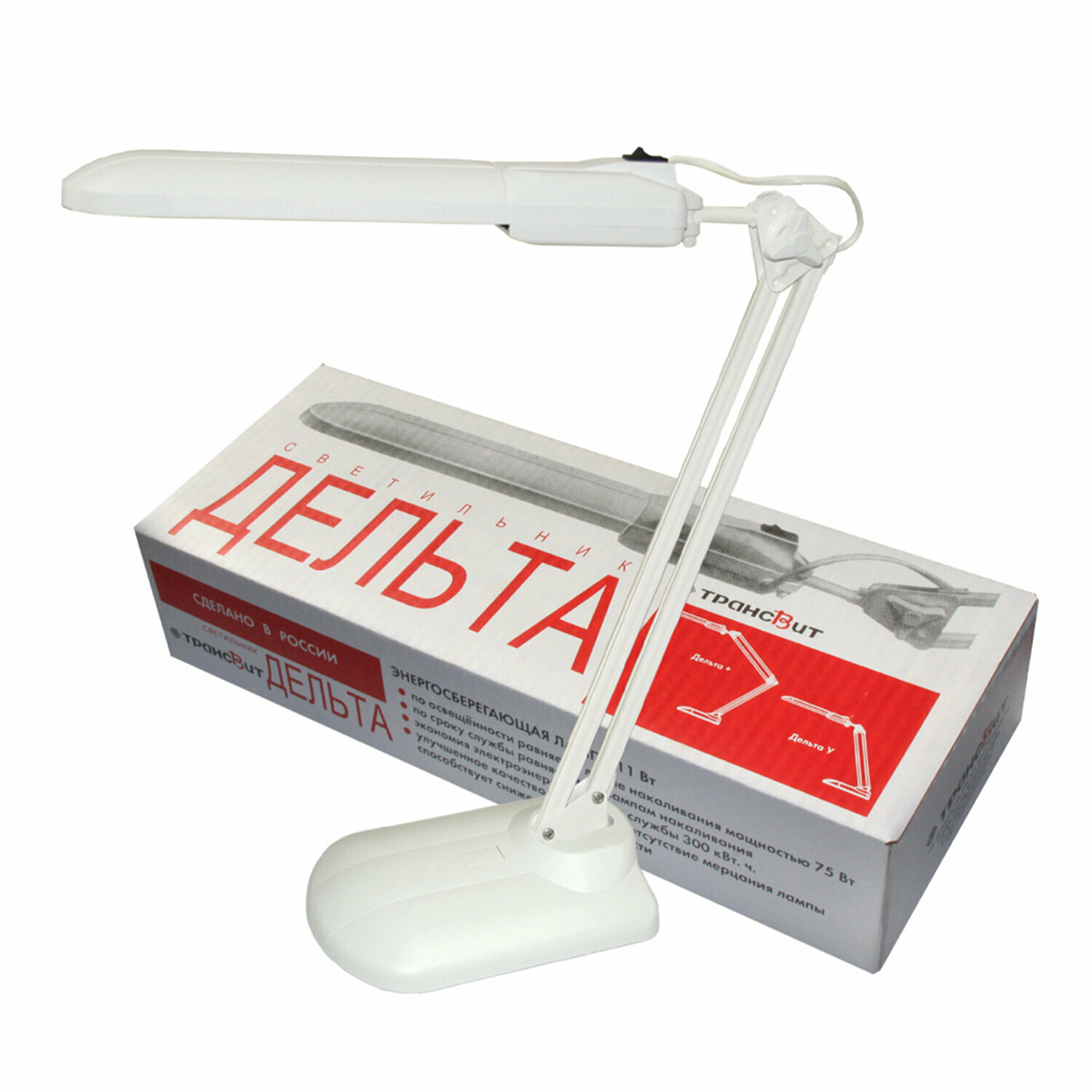 Светильник настольный на подставке Трансвит "Дельта-У", люминесцентный, белый, 234639