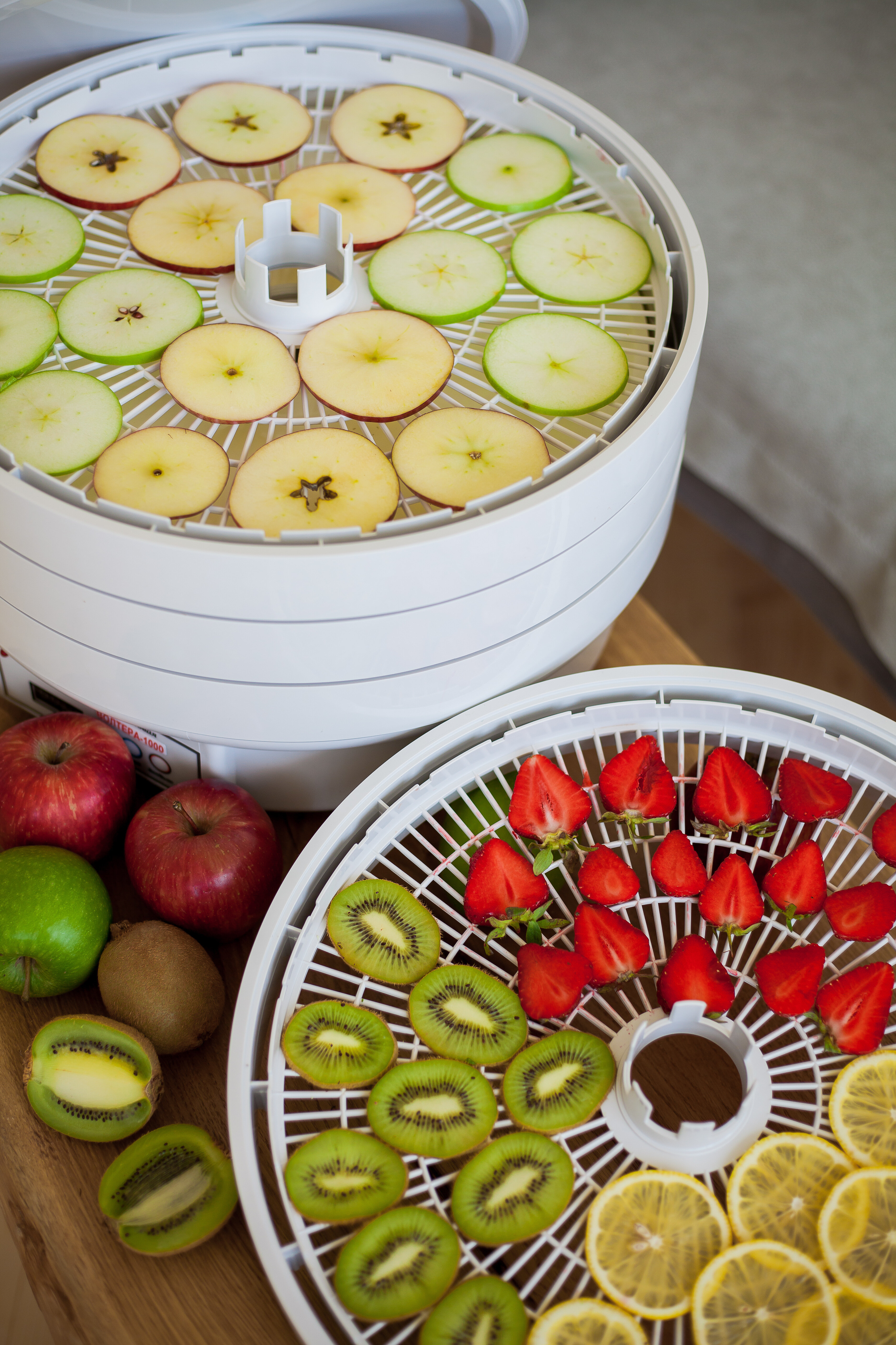 | Плюсы: | Позволяет загрузить намного больше фруктов, чем ожидали в начале. Быстро высушивает фрукты, практически на всех поддонах одновременно, за счет продуманной системы подачи теплого воздуха. Экономия электричества и времени на сушку. |