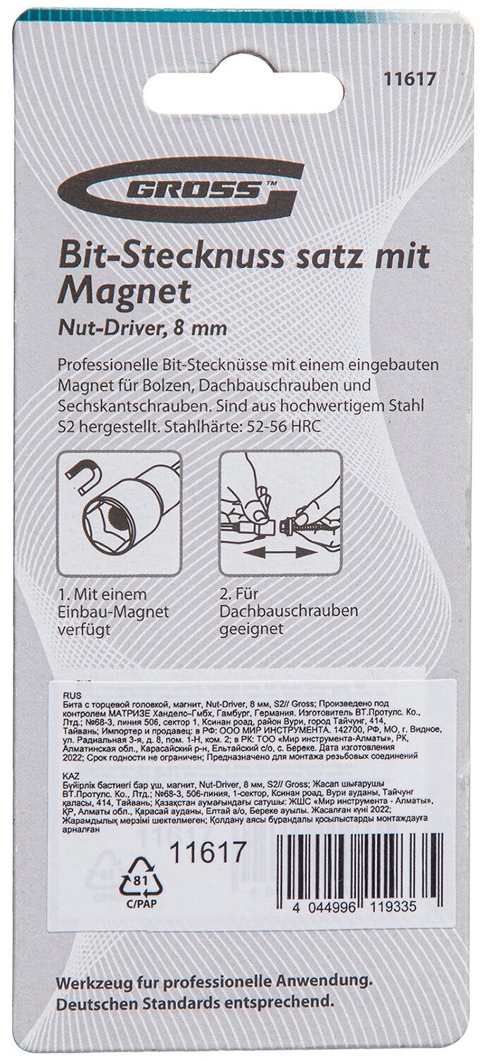 Бита с торцевой головкой Gross магнит, Nut-Driver, 8 мм, S2 11617