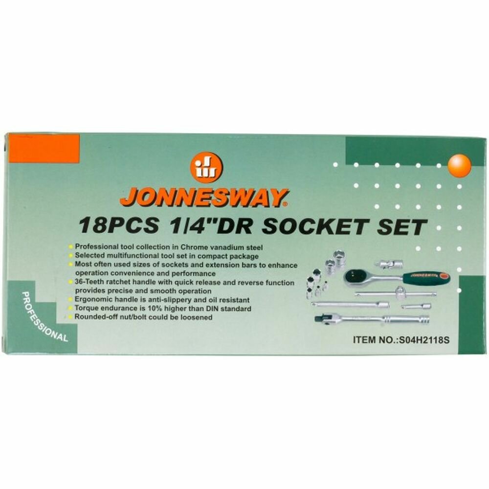 Набор торцевых головок с трещоткой Jonnesway 1/4" (S04H2118S) (18 шт.)