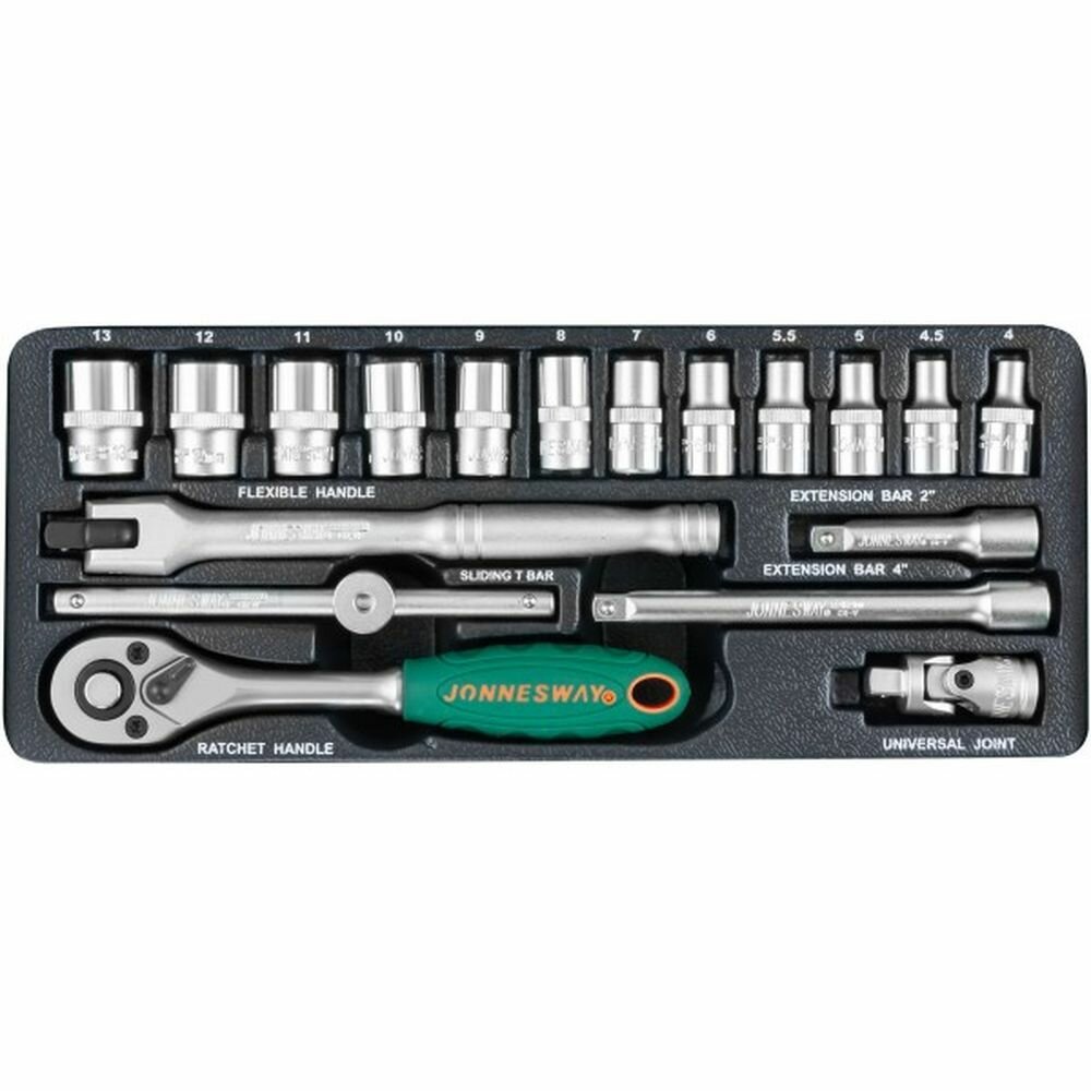 Набор головок JONNESWAY 1/4 4-13мм с аксессуарами 18 предметов