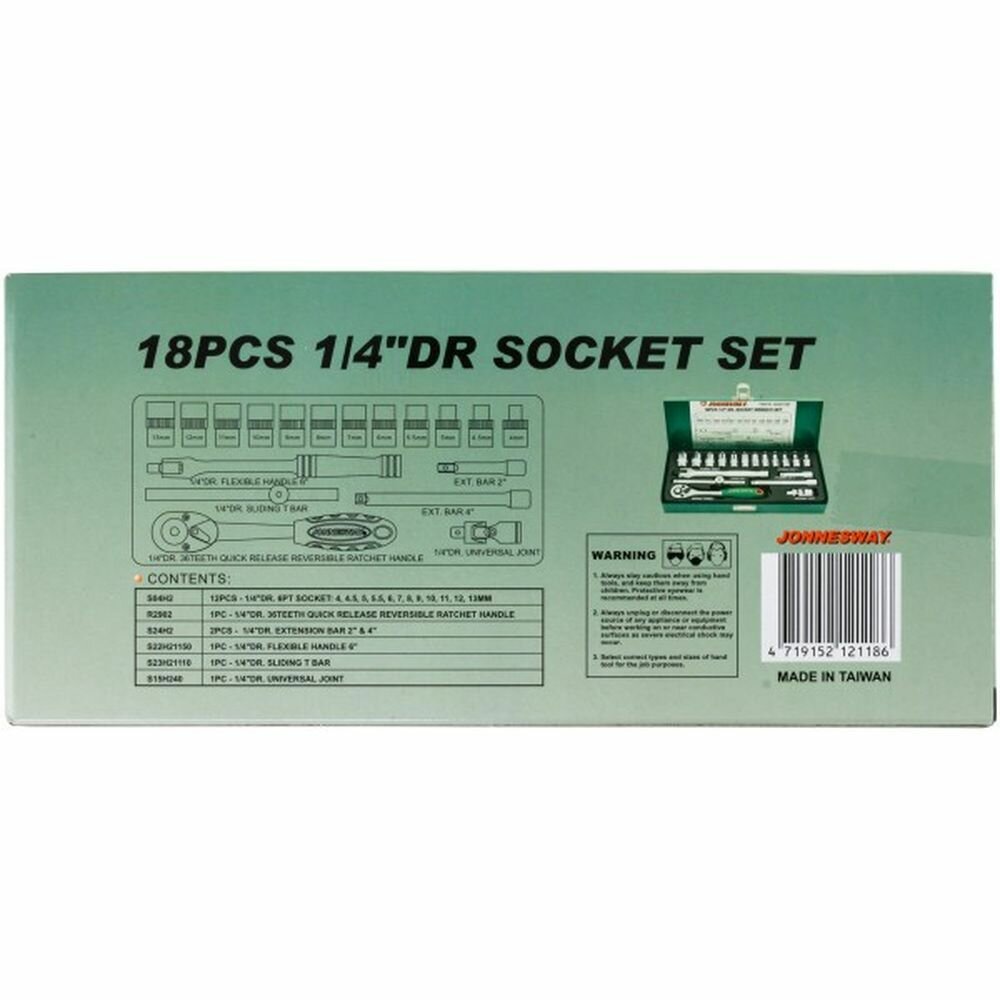 Набор головок 1/4'' 18 пр. 6 гр. 4-13 мм JW JONNESWAY S04H2118S | цена за 1 шт