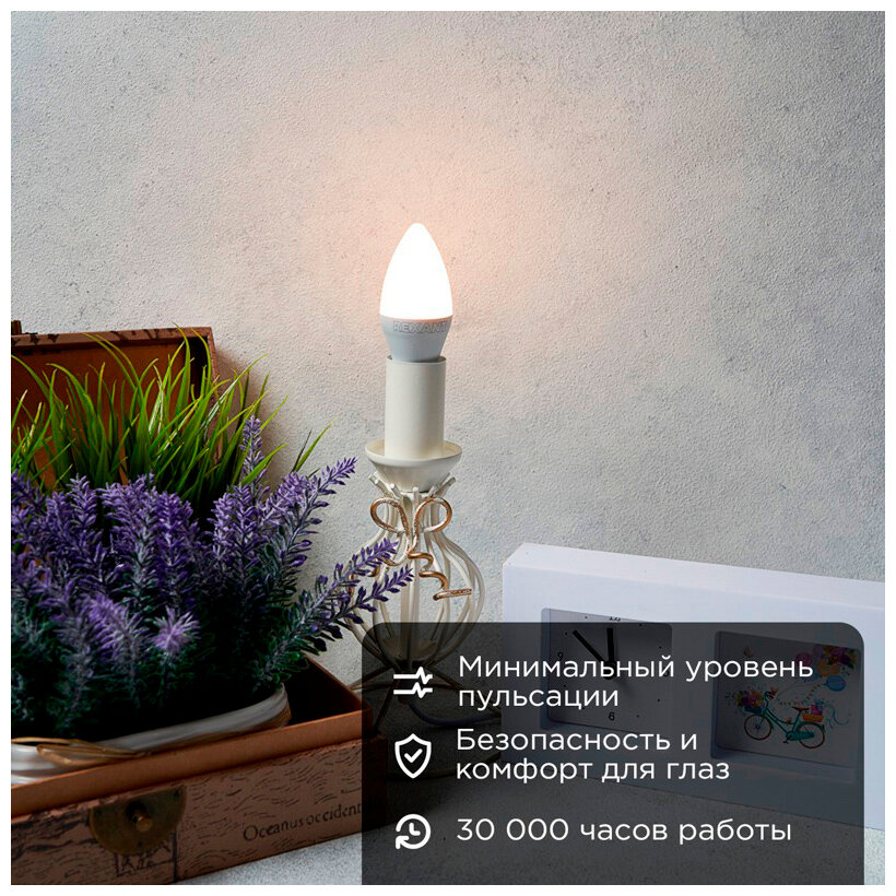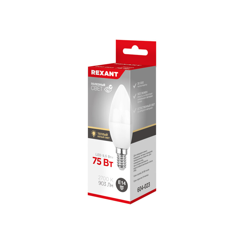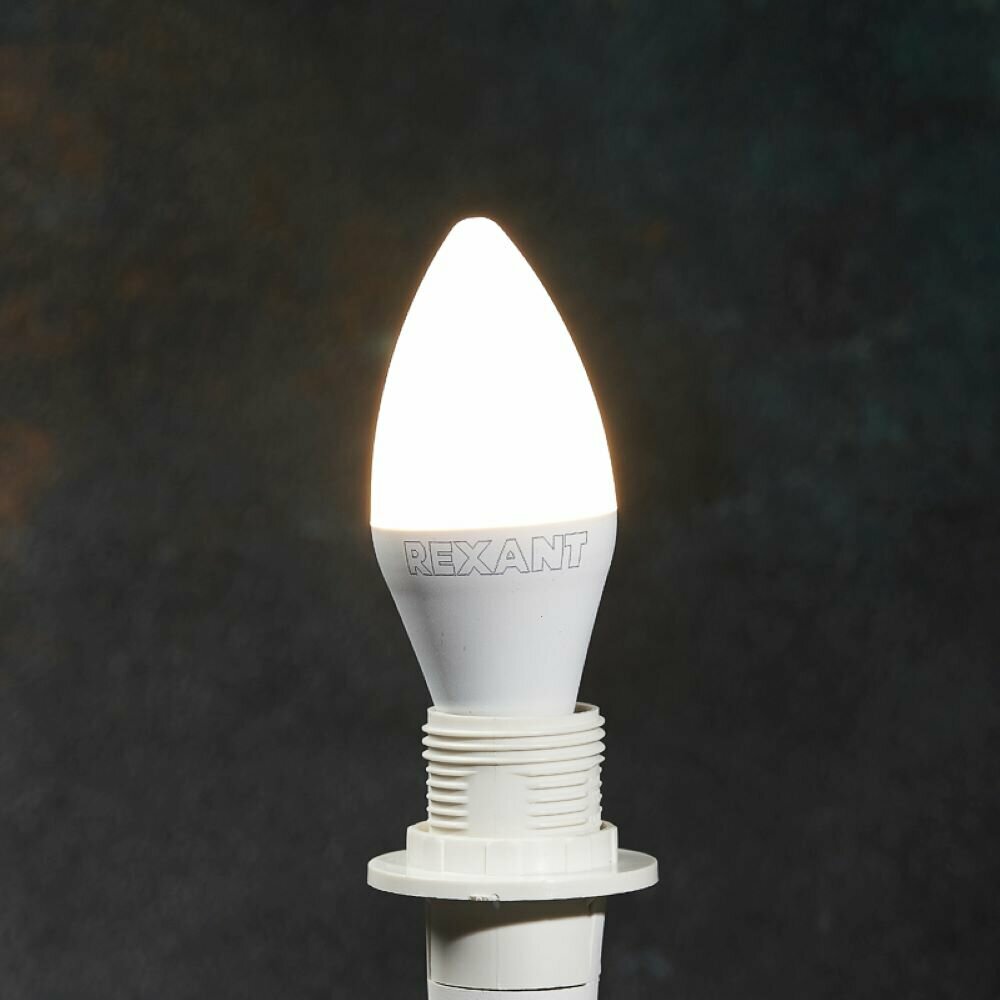 Светодиодная лампа REXANT свеча, 9,5 Вт, E14, 903 лм, 2700 K, теплый свет 604-023