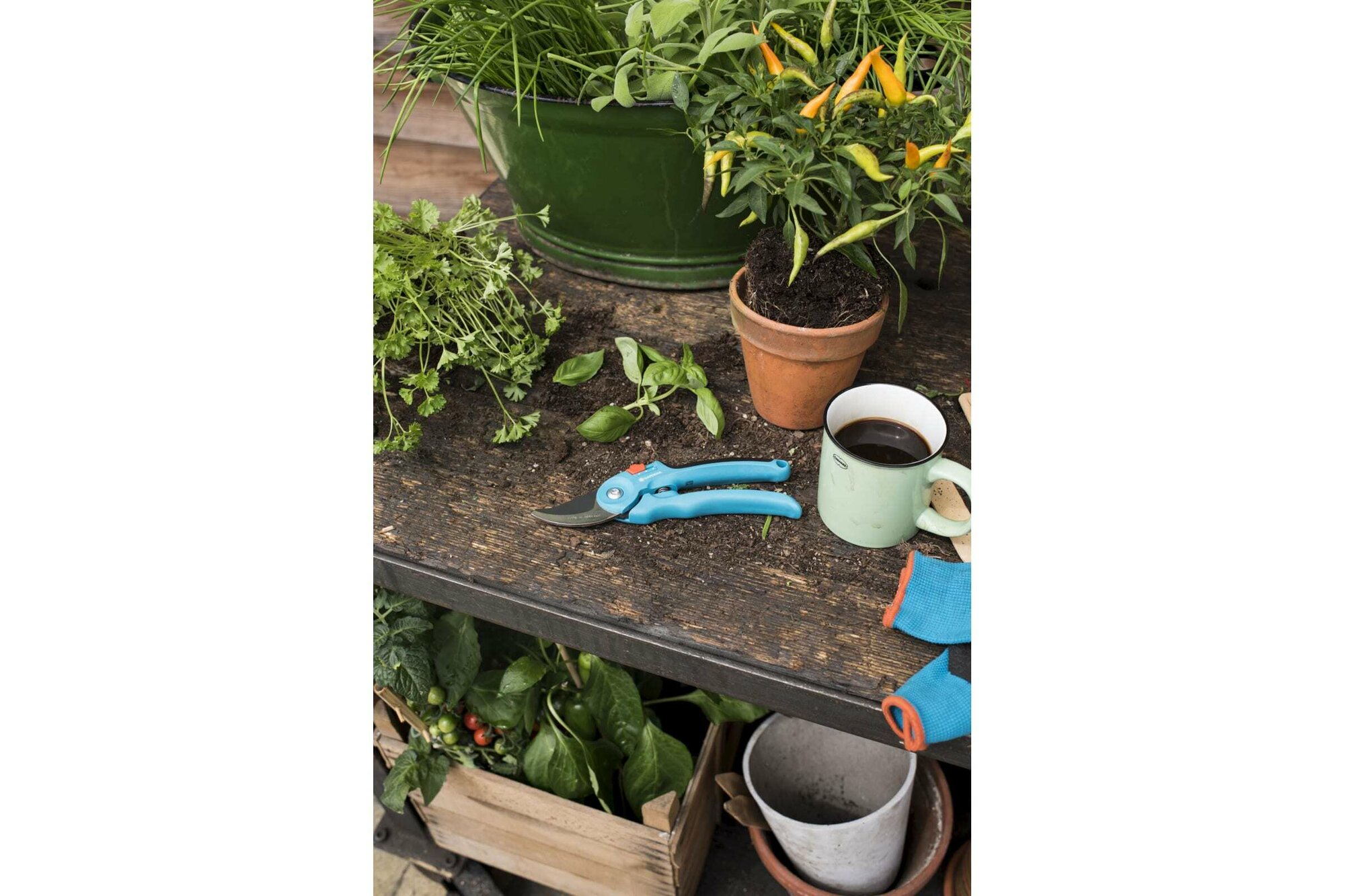 Секатор Gardena B/S-M, сталь, пластик, прецизионные лезвия, голубой, 246мм