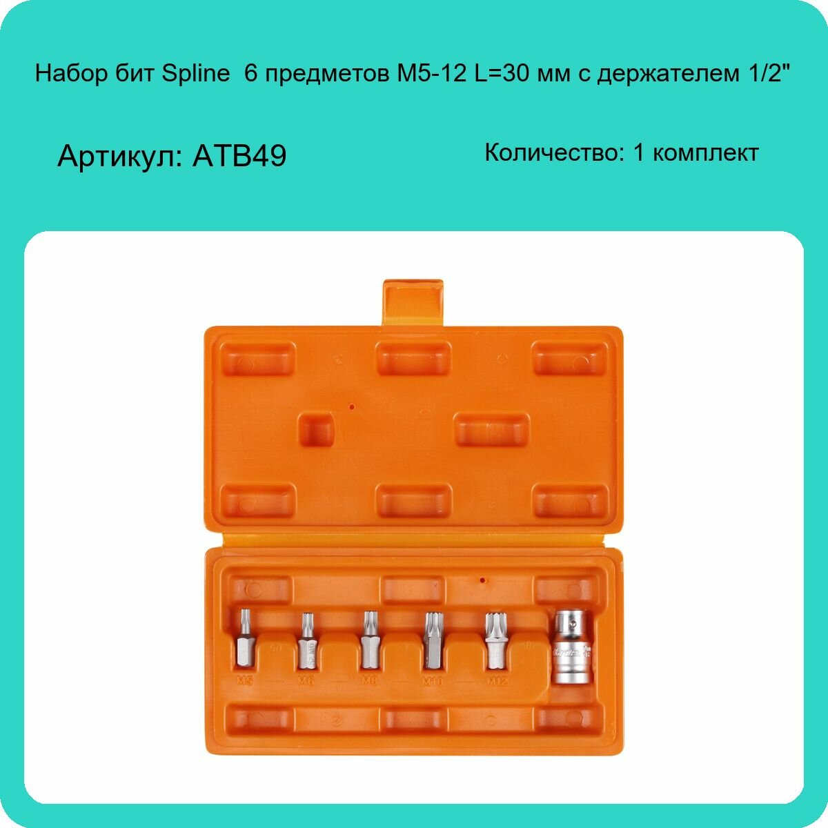 Набор бит вставок SPLINE 3/8 30мм с держателем бит 1/2 DR 6 предметов в кейсе AT-B-49