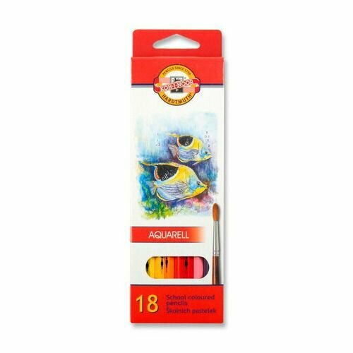 Карандаши акварельные KOH-I-NOOR "Рыбы", 18 цветов, заточенные, картон, европодвес (3717018004KSRU)