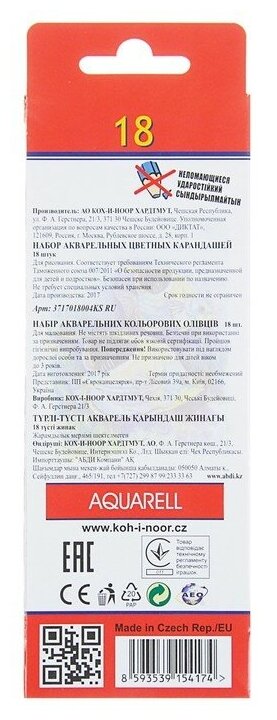 Купить Карандаши акварельные 18 цветов Koh-I-Noor Рыбы (L=175мм, D=6.5мм, d=3мм, 6гр) картонная упаковка (3717018004KS)