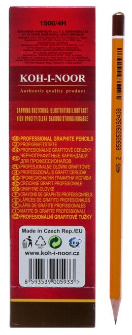 СохранитьКарандаш чернографитный KOH-I-NOOR 1500, 1 шт., 4H, корпус желтый, заточенный, 150004H01170 В комплекте: 12шт. интересное: