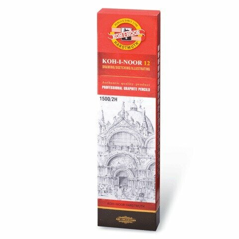 Купить Карандаш чернографитный KOH-I-NOOR 1500, 1 шт., 2H, корпус желтый, заточенный, 150002H01170RU - 12 шт.