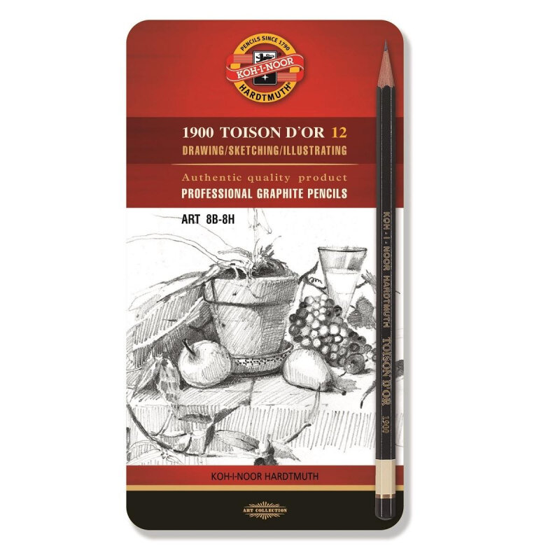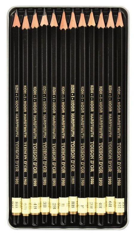 Набор чернографитных (простых) карандашей Koh-I-Noor Toison D'or 1902 Art (8B-8H, заточенные) метал. пенал, 12шт. (1902012009PL)