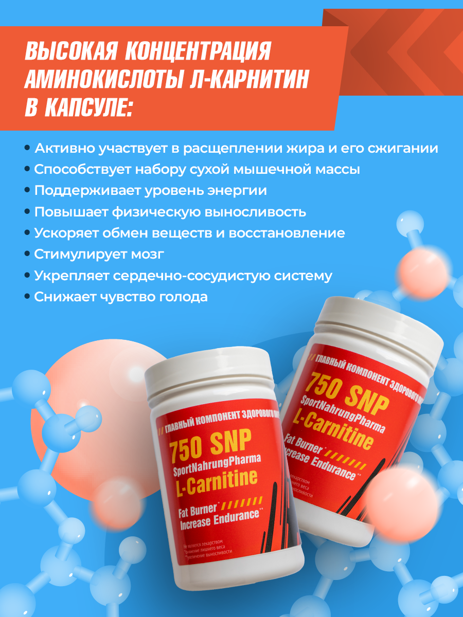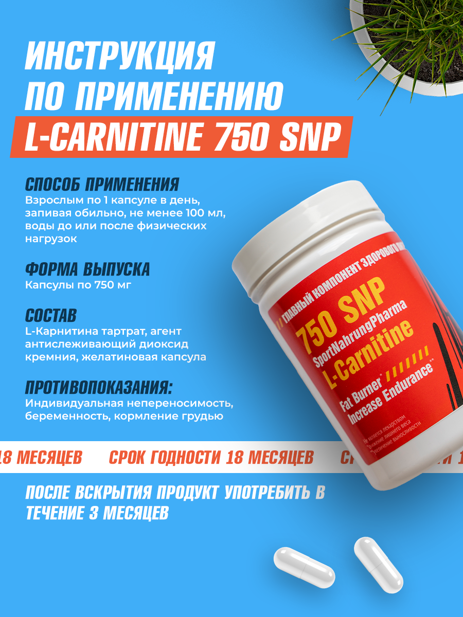 L Carnitine 750 SNP/ Спортивное питание l карнитин в капсулах для коррекции веса, сушки, похудения / Жиросжигатель л карнитин для спорта / Витамин B11