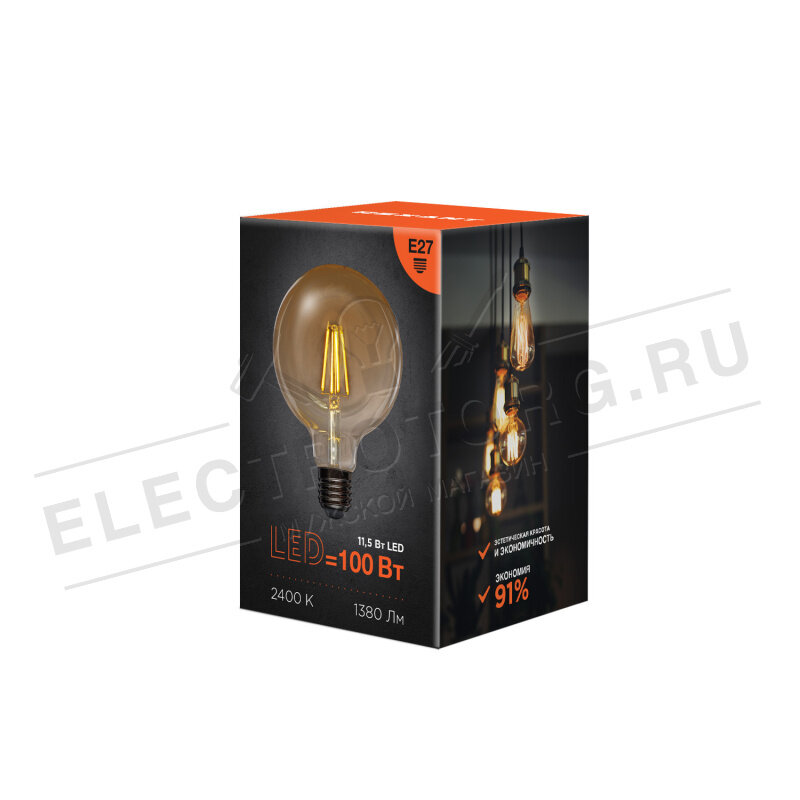 Купить Лампочка светодиодная филаментная 11.5 Вт E27 с золотистой колбой