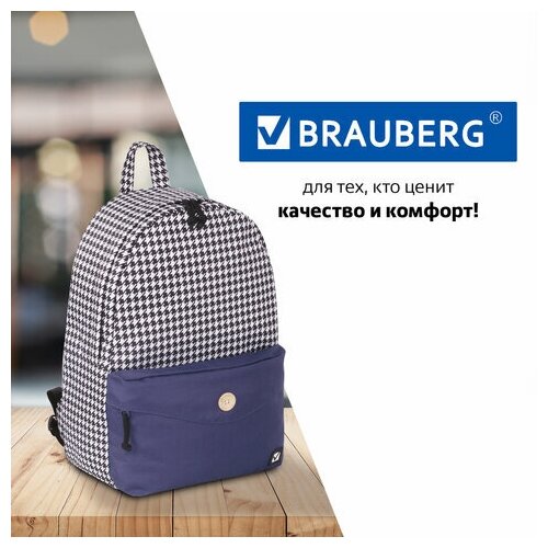 Рюкзак BRAUBERG SYDNEY универсальный, карман с пуговицей, бело-синий, узор клетка, 38х27х12 см, 228840