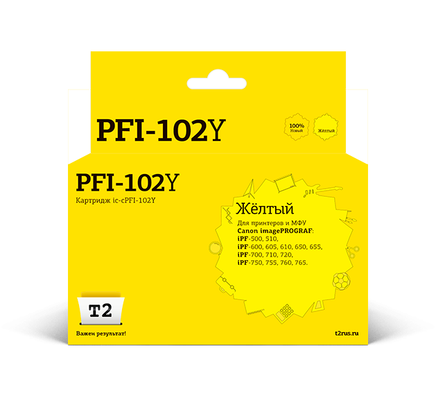 СохранитьСтруйный картридж T2 IC-CPFI-102Y (PFI-102Y/102Y/102) для принтеров Canon, желтый интересное:
