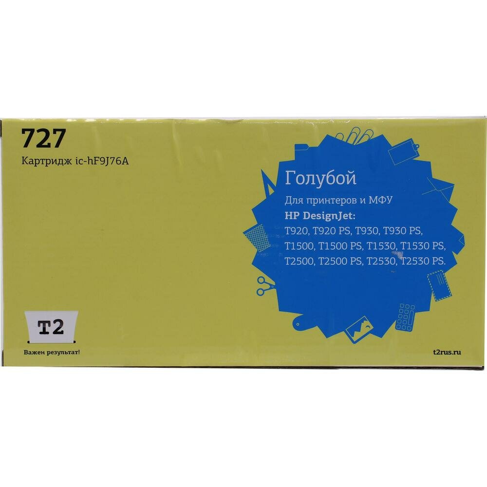 T2 F9j76a Картридж 727 (ic-hf9j76a) для HP Designjet T920/t930/t1500/t1530/t2500/t2530, голубой .
