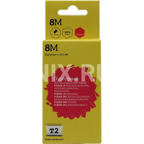 IC-CCLI-8M Картридж T2 для Canon PIXMA iP4200/4300/5200/Pro9000/MP500/600, пурпурный, с чипом