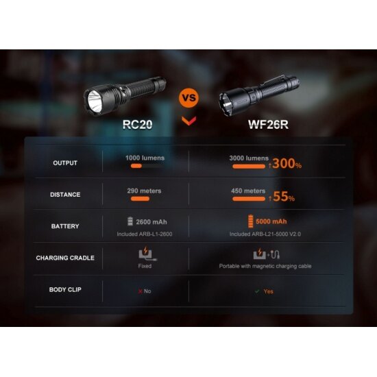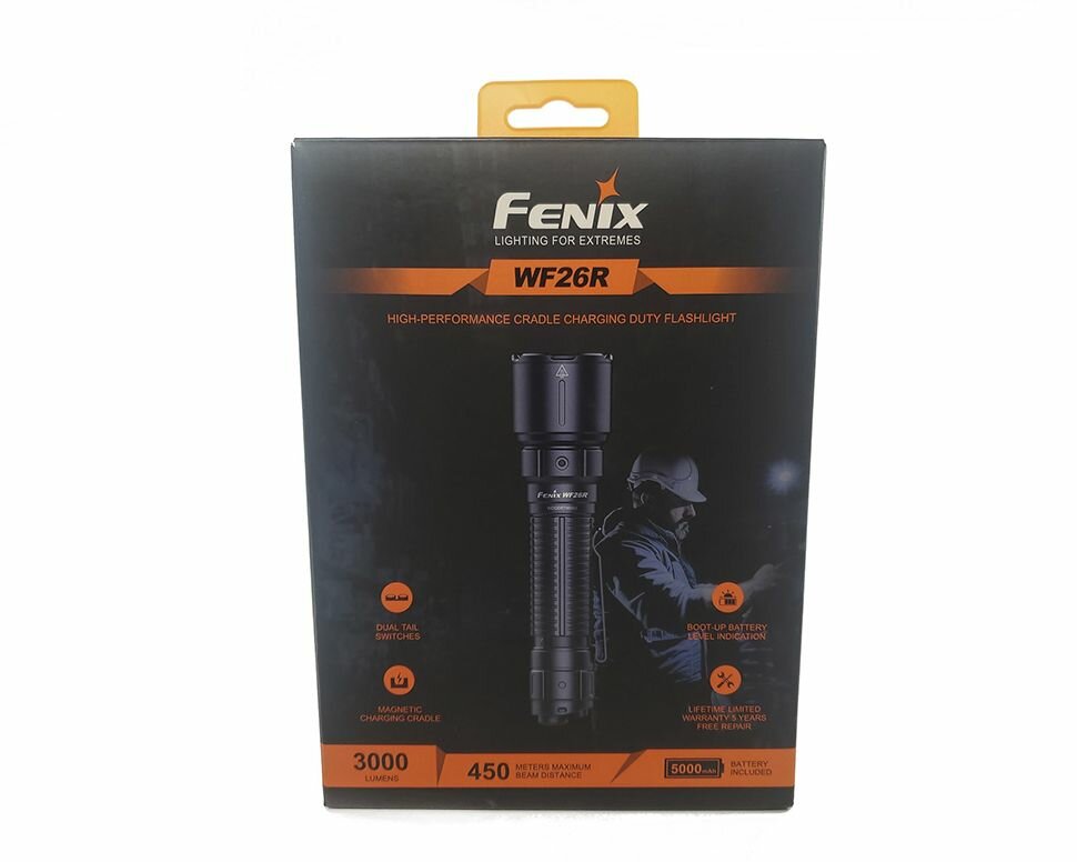 | Подробная комплектация | модель фонаря Fenix WF26R, литий-ионная батарейка ARB-L21-5000 V2.0, зарядная подставка, магнитный зарядный кабель, шнурок, уплотнительное кольцо, инструкция, талон гарантии. |
