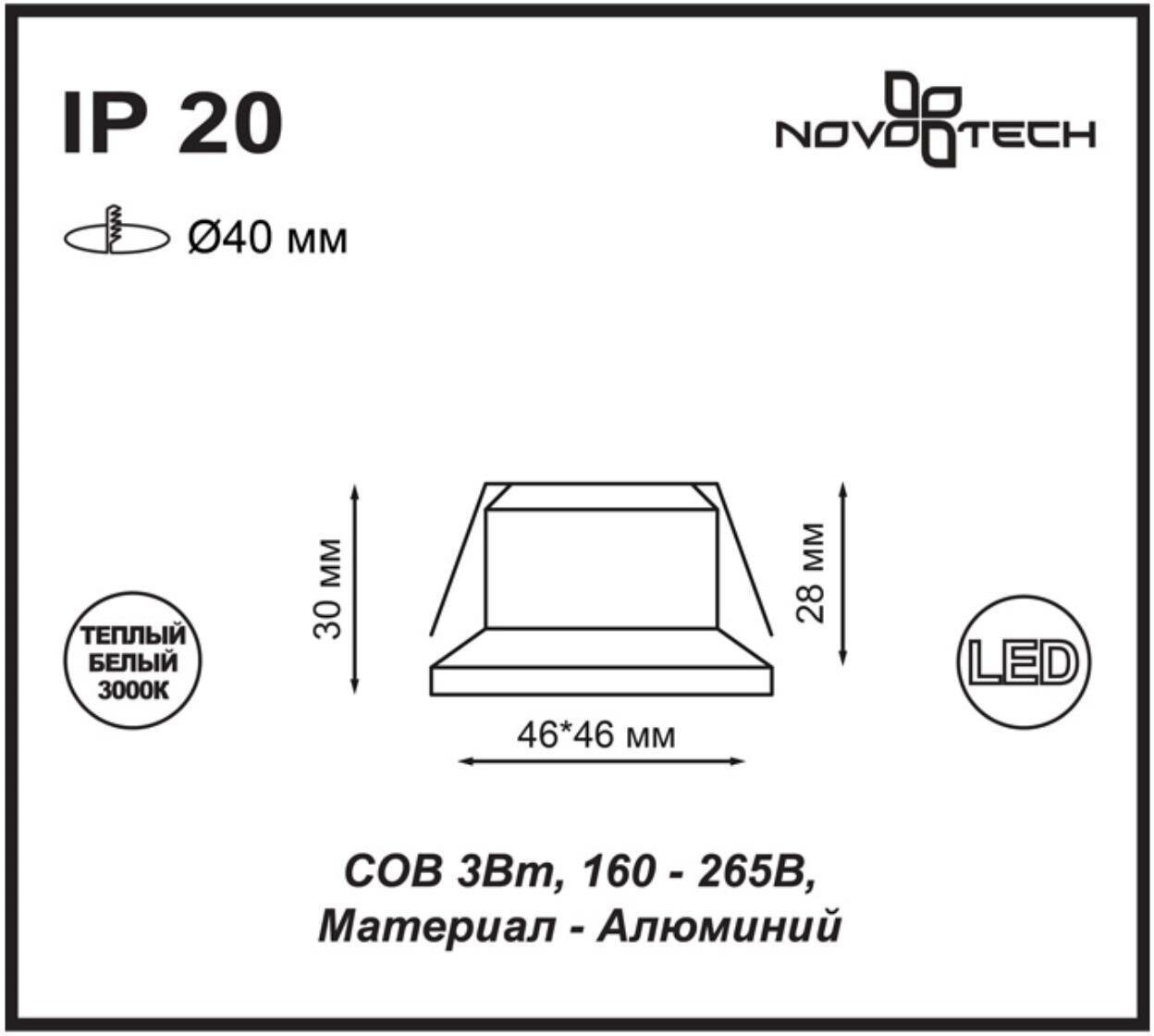 Встраиваемый светильник Novotech Dot 357701, LED, кол-во ламп:1шт., Белый интересное: