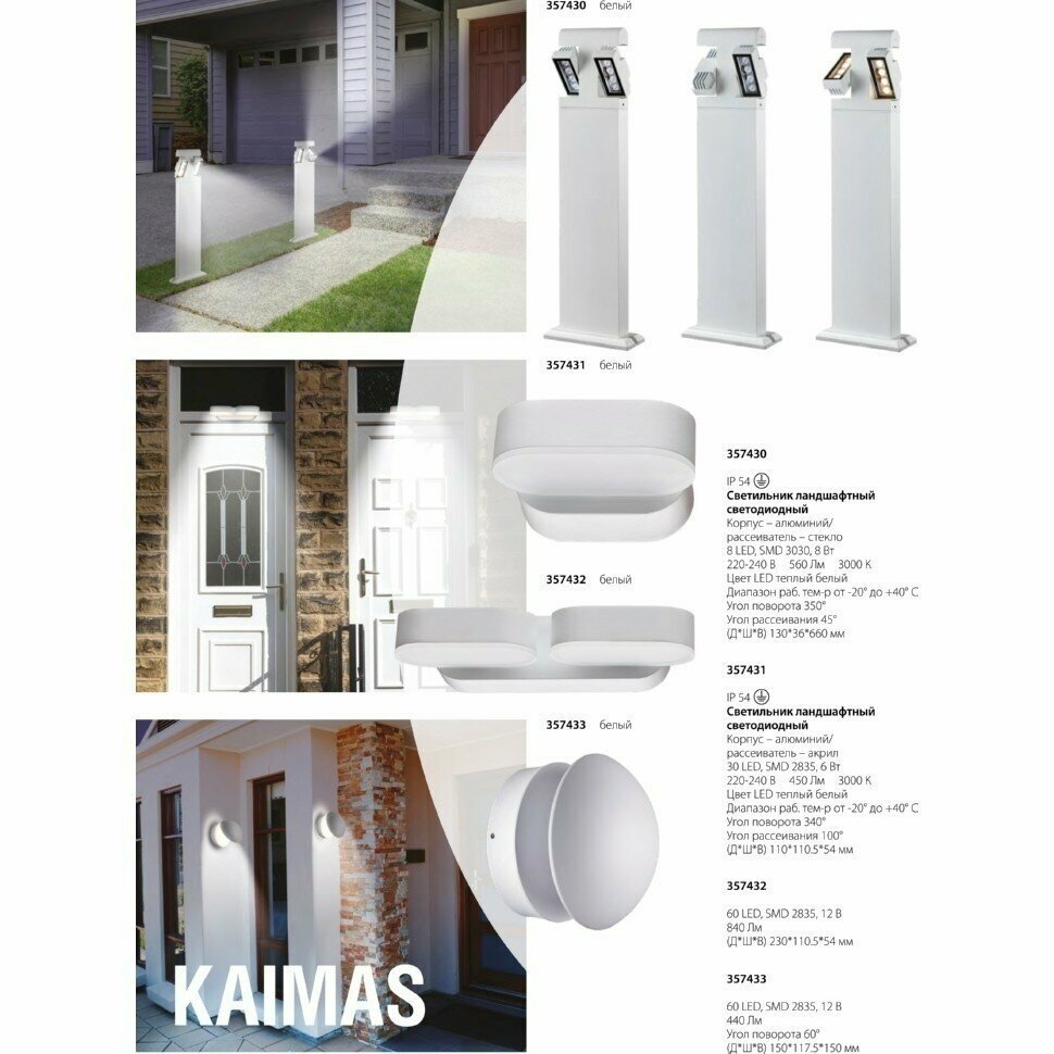 Уличный LED настенный светильник Novotech Kaimas 357433, LED, кол-во ламп:1шт., Белый