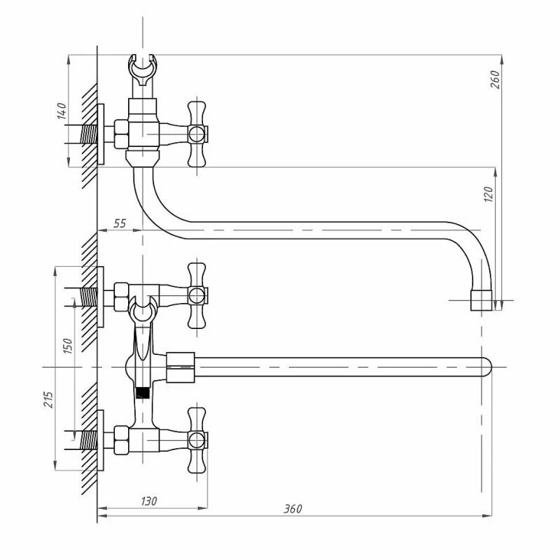 | Комплектация | Корпус из латуни (литой) — 1 шт. Узел излива в сборе — 1 шт. Вентильная головка в сборе (с керамическими пластинами) — 2 шт. Маховики в сборе Крест металлические Арт.75 — 2 шт. Импортный эксцентрик с отражателем ЕВРО — 2 шт. Душевой шланг — 1 шт. Лейка для душа обычная — 1 шт. Держатель лейки на корпус — 1 шт. Держатель лейки настенный — 1 шт. |